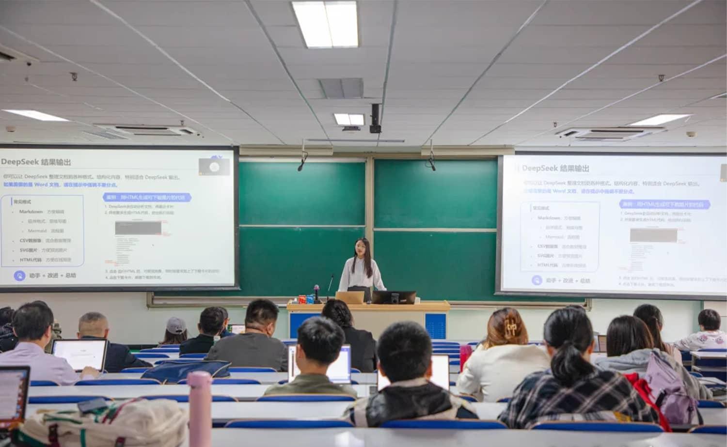 在 DeepSeek 应用讲解环节,徐澜玲深入浅出地阐述了提示语(Prompt)在与AI交互中的核心作用,并结合具体案例,清晰地展示了不同模型对提示语的不同要求以及优化提示语的方法,为师生们在实际运用中更好地引导AI提供了宝贵的思路。