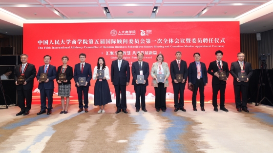 10月2日,中国人民大学商学院第五届国际顾问委员会第一次全体会议暨委员聘任仪式举行。中国人民大学党委书记张东刚出席并致辞。中国人民大学副校长支晓强,香港经纬集团副主席兼执行总裁陈亨利,中国前国家跳水队队员、跳水奥运冠军、世界泳联跳水技术委员会委员、商学院2004级校友郭晶晶,西班牙艾赛德商学院院长Joan Rodon Mòdol,北京紫禁城投资管理有限公司董事长罗锐韧,二六三网络通信股份有限公司董事长兼总裁李玉杰,吉利科技集团有限公司CEO兼董事徐志豪,中国人民大学原副校长、第五届全国MBA教育指导委员会副主任委员伊志宏,中科润宇环保科技股份有限公司副董事长张国宏,凤凰城科技集团董事长周明德,北京钮泰文化发展有限公司董事长张云,澳大利亚墨尔本大学商学院院长Jenny George出席会议。意大利路易斯大学副校长Antonio Majocchi、日本一桥大学商学院院长大园惠美、新紫光集团有限公司董事胡冬辉、固德威技术股份有限公司董事长兼总经理黄敏、霍氏集团总裁霍建民、中诚信集团董事长毛振华、用友网络科技股份有限公司董事长王文京以线上形式出席会议。中国人民大学商学院党委书记旋天颖主持。