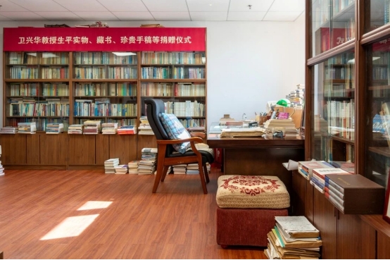 (卫兴华教授生平实物、藏书、珍贵手稿等捐赠仪式暨书房场景复原特展。学校供图)