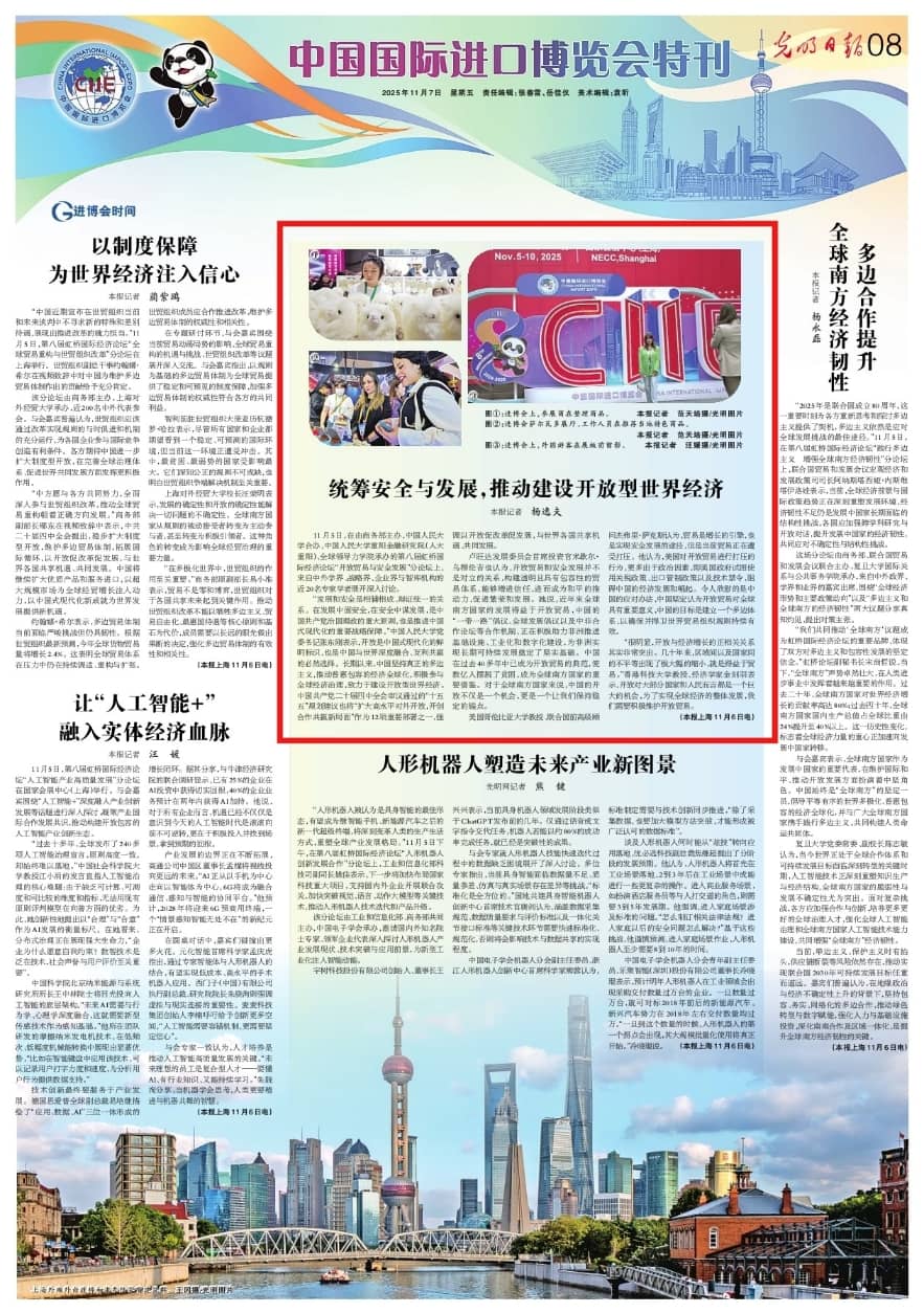 “发展和安全是相辅相成、辩证统一的关系。在发展中固安全,在安全中谋发展,是中国共产党治国理政的重大原则,也是推进中国式现代化的重要战略保障。”中国人民大学党委书记张东刚表示,开放是中国式现代化的鲜明标识,也是中国与世界深度融合、互利共赢的必然选择。长期以来,中国坚持真正的多边主义,推动普惠包容的经济全球化,积极参与全球经济治理,致力于建设开放型世界经济。中国共产党二十届四中全会审议通过的“十五五”规划建议也将“扩大高水平对外开放,开创合作共赢新局面”作为12项重要部署之一,强调以开放促改革促发展,与世界各国共享机遇、共同发展。