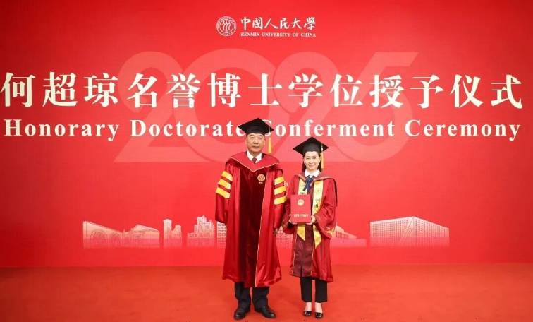据中国人民大学微信公众号消息,11月7日,全国政协常委、全国工商联副主席、全国妇联常委、信德集团董事长何超琼获授中国人民大学艺术学名誉博士学位。