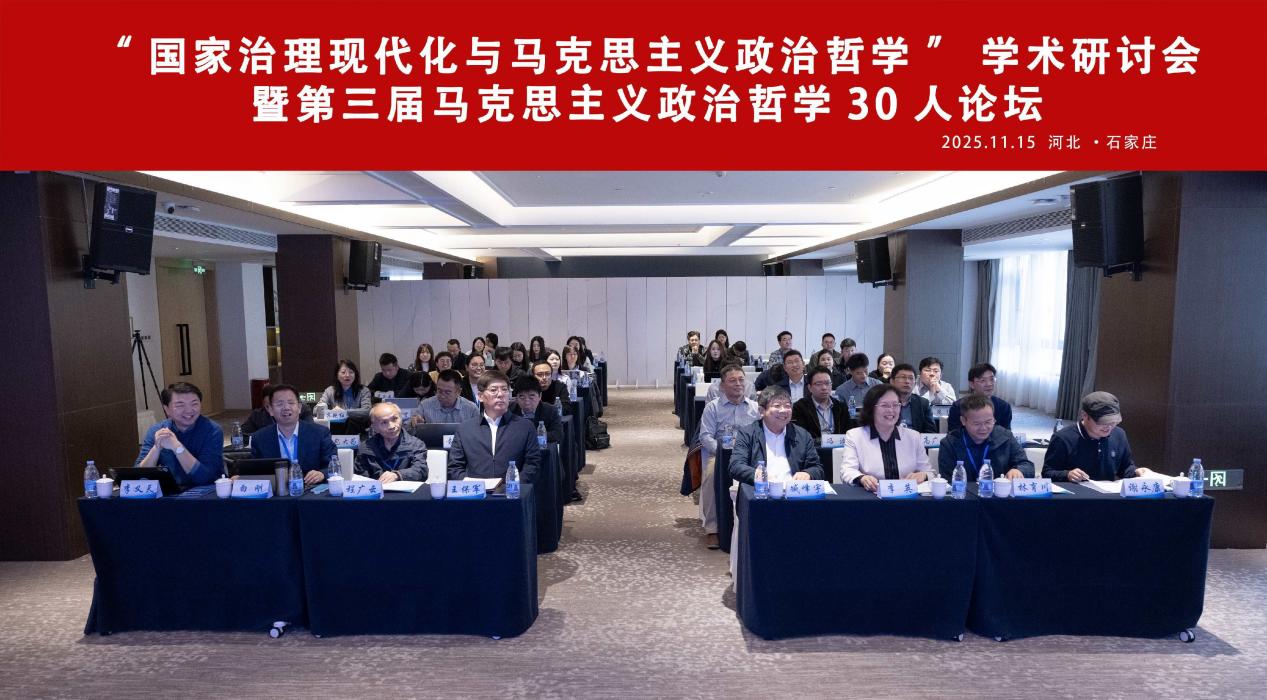 11月15日至16日,“国家治理现代化与马克思主义政治哲学”学术研讨会——暨第三届马克思主义政治哲学30人论坛在河北正定召开。本次会议由中国辩证唯物主义研究会、马克思主义政治哲学研究会主办,河北经贸大学马克思主义学院、中国人民大学哲学院承办,中国人民大学当代中国哲学发展研究中心协办。河北经贸大学党委副书记王保军,马克思主义政治哲学研究会会长、中国人民大学哲学院院长臧峰宇出席开幕式并致辞。会议开幕式由马克思主义政治哲学研究会副秘书长包大为主持。