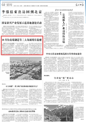 创新产业加快发展。10月份,高技术产业销售收入同比增长13.6%,延续两位数较快增长。其中,高技术服务业销售收入同比增长16.1%;高技术制造业销售收入同比增长10.1%,特别是随着“人工智能+”行动加快落地,集成电路、工业机器人、无人机制造销售收入同比分别增长32.5%、41.7%和38.4%。
