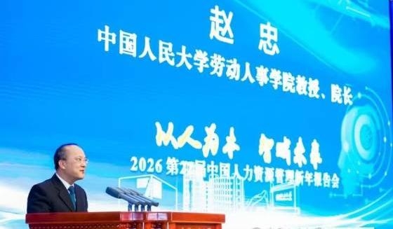 赵忠回顾了学院40余年的发展历程,强调学院始终致力于服务国家战略和社会发展,关注社会民生重大课题。他表示,本次新年报告会的主题是对党的二十届四中全会精神的具体贯彻,突出“投资于人”的理念。人力资源管理的核心在于对人的理解和尊重,发现并激发人的潜能,期待与会专家围绕人才战略与治理创新深入研讨,共同解决发展的理论与现实问题,为社会各界提供智力支持,为经济社会高质量发展与中国式现代化建设做出更大的贡献。
