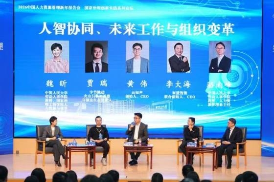 圆桌对话暨国家治理创新实践系列论坛环节以《人智协同、未来工作与组织变革》为主题,由中国人民大学劳动人事学院教授、国家治理工程学院人力资源与领导力研究所所长魏昕主持。对话嘉宾包括字节跳动火山引擎加速器和创企生态负责人贾瑞、云知声智能科技股份有限公司创始人兼CEO黄伟、北京面壁智能科技有限责任公司联合创始人兼CEO李大海,以及中国人民大学劳动人事学院教授、人力资源管理系系主任骆南峰。对话聚焦具体场景与真实痛点,探讨人智协同如何改变工作方式、团队协作与组织形态。贾瑞以飞书、即梦等AI工具应用为例,指出AI正将个体工作从执行推向设计与创造,催生出“超级个体”。黄伟分享了云知声的“山海大模型”在医疗场景中的应用实践,包括记录医患对话、自动生成病历、提供处置建议等,提高了医生工作效率并完善了病案的全病程管理。李大海介绍了面壁智能开发的司法辅助审判系统的应用及效果:AI能溯源法条、抽取案件要素,显著提升审判效率与质量。骆南峰强调高校教育应强化基础知识与经典理论教学,提升学生对AI信息的辨别能力,将AI视为队友而非替代者。主持人与对话嘉宾也认为,AI已经改变了人才成长路径、团队协作方式,未来可能有更多“AI原生组织”。