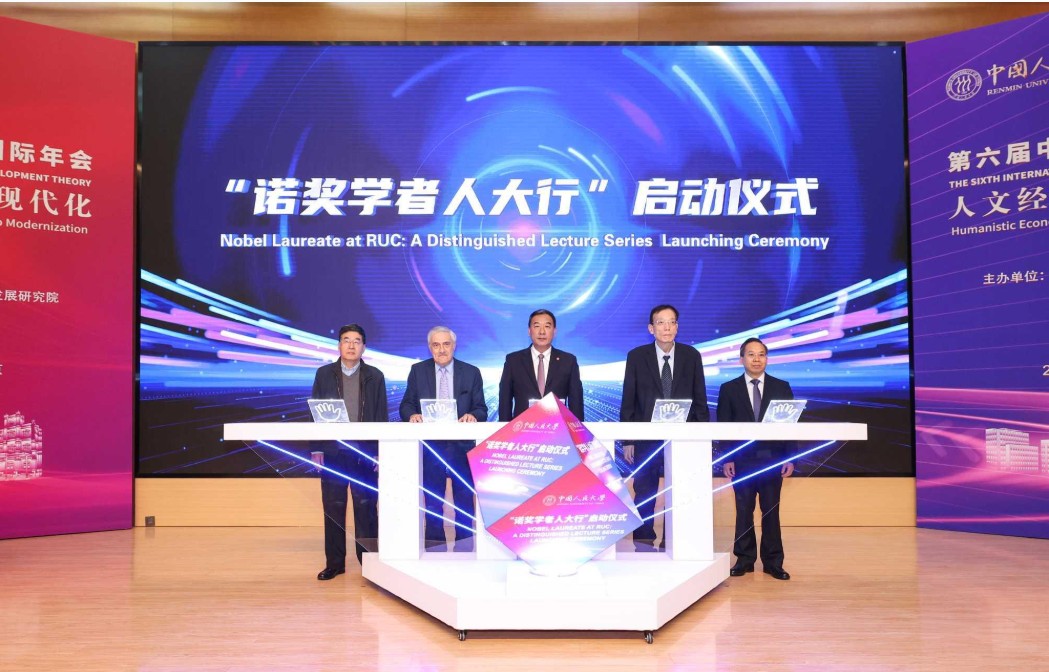 10月25日,学校举办“诺奖学者人大行”启动仪式,中国人民大学党委书记张东刚为乔尔·莫基尔颁发兼职教授聘书,并赠送中国人民大学“文明新形态‘两史两论’丛书”。中国人民大学副校长冯仕政主持。