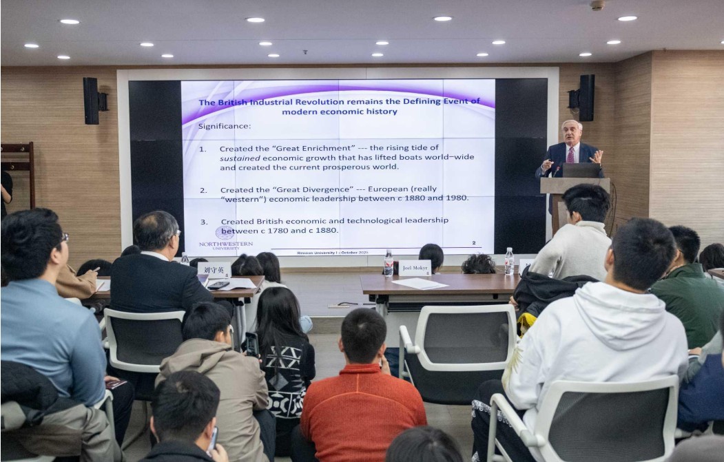 张东刚向乔尔·莫基尔表示热烈欢迎。他表示,莫基尔教授提出的“文化与制度驱动增长理论”与“人文经济学”这一中国式现代化的经济学表达高度契合、同频共振。学校将进一步深化与莫基尔教授等国际顶尖学者的交流合作,推动前沿理论与中国发展实践的深度融合、创新转化与共同进步;进一步强化学科建设,贯彻“两个结合”,深化文明交流互鉴,推动经济学的“人文回归”,打破经济增长的“人文悖论”,增进人类命运共同体的“人文共识”,为中国式现代化提供智慧和支撑,为创造人类文明新形态贡献更多力量。