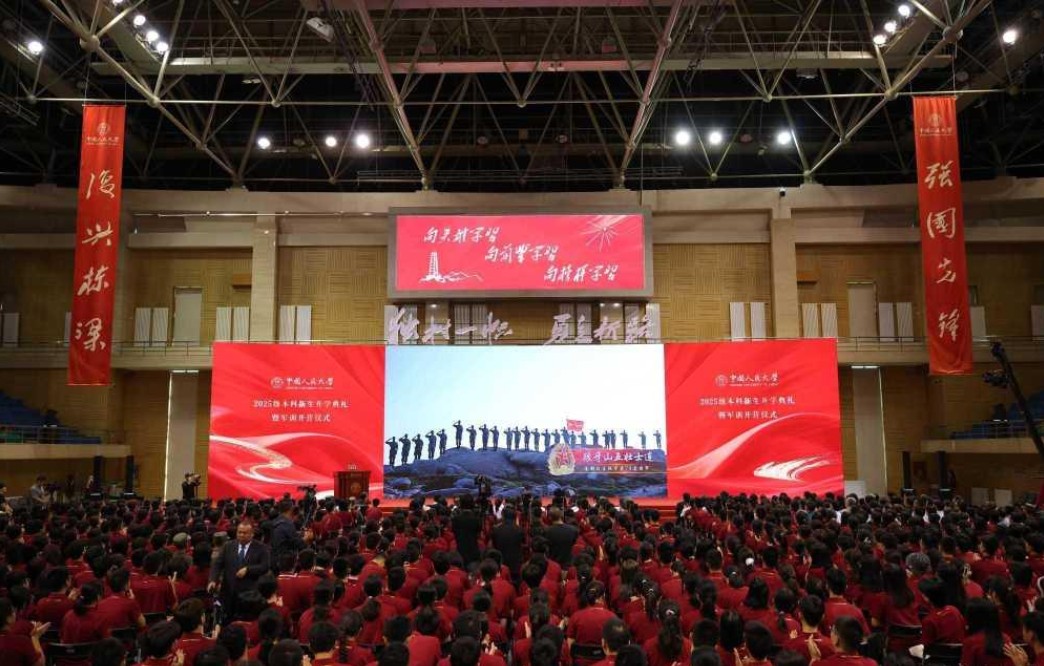 8月25日,中国人民大学2025级本科新生开学典礼暨军训开营仪式上,“夜袭阳明堡战斗模范连”“狼牙山五壮士连”“雁门关伏击战英雄连”“刘老庄连”等12支来自五大战区的抗日英模部队为同学们送上寄语。声声如雷、整齐洪亮,激昂誓言点燃全场,这是历史的回响,也是对新时代人大青年的深情嘱托。