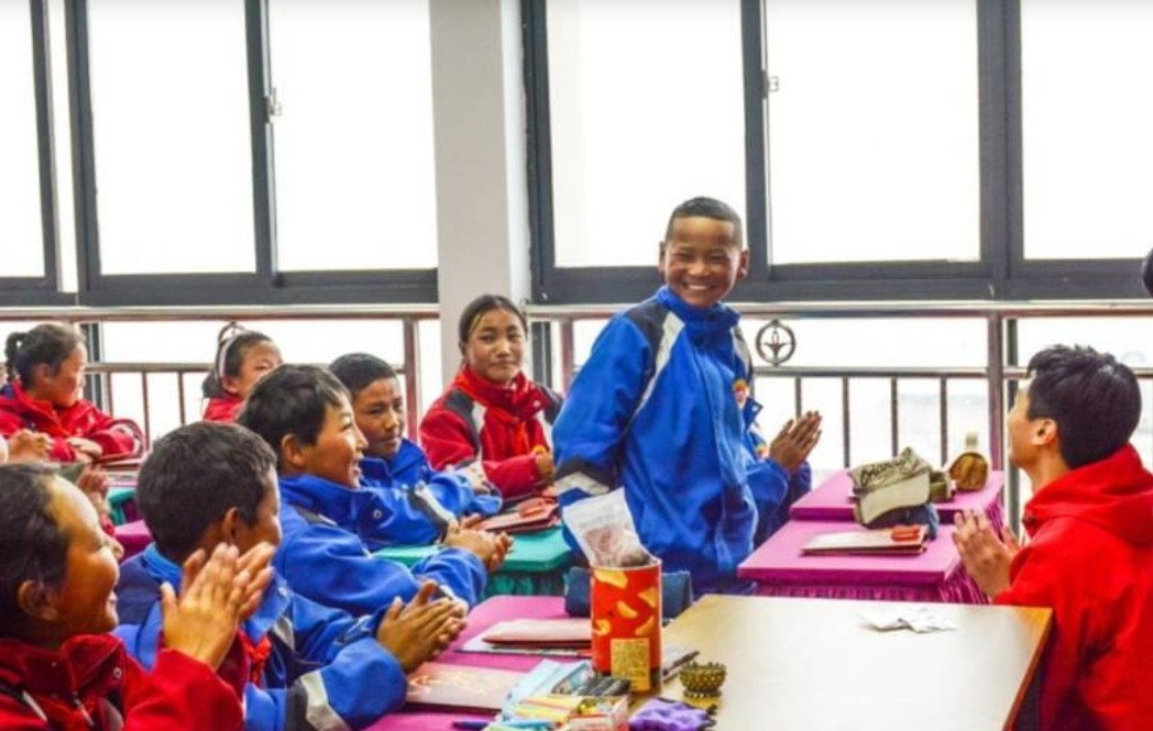 今年5月,我校“大国边疆”实践团师生翻过海拔5248米的嘉措拉山,来到西藏人口最多的定日县,走访首批抵达日喀则地震灾区的英雄部队,他们与部队官兵共走巡边路,为措果乡中心小学的孩子们送上千余册图书。那一刻,“人大红”与“橄榄绿”在云海与峰峦间交汇,这是一场名为报国的“青春接力”——脚下是祖国大地,前方是山河无恙。