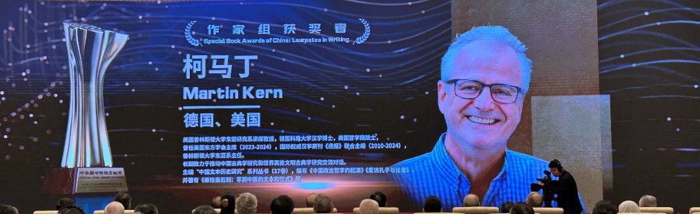 中国人民大学文学院古代文本文化国际研究中心主任柯马丁(Martin Kern)教授以作家身份荣获该奖,并作为获奖代表发言。在发言中,柯马丁表示,“学术研究从来不是孤军奋战,我始终将其视为全球学术共同体的一部分”,“我的中国古典研究工作在两个方面相互关联:首先,它贯穿于所有人文领域,无论是理论性的,还是致力于其他古代和中古文明的研究。其次,它与世界各地工作的中国同事相连,尤其是那些在中国工作的同事”“我接受此奖不仅视为对个人工作的肯定,更是对所有同仁的认可,尤其希望能激励中国年轻一代学者——他们正是这一国际学术领域的未来”。