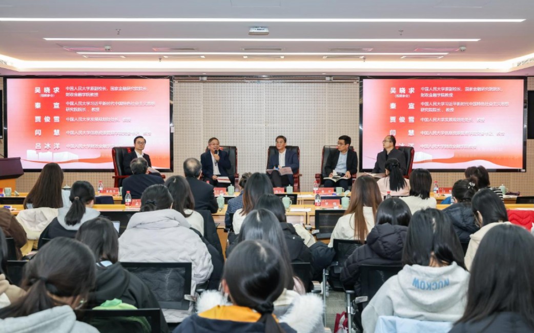 在“主文献与建构中国自主的知识体系”对话阐释环节,中国人民大学原副校长、国家一级教授、国家金融研究院院长吴晓求,习近平新时代中国特色社会主义思想研究院院长秦宣,发展规划处处长、学科建设办公室主任贾俊雪,信息资源管理学院党委书记闫慧,财政金融学院教授吕冰洋围绕主文献制度的建设历程、在建构中国自主知识体系中的核心价值定位、相关学理基础的深化研究以及主文献平台的深度利用等方面展开深入交流。中国人民大学研究生院常务副院长、应用经济学院教授林晨主持。