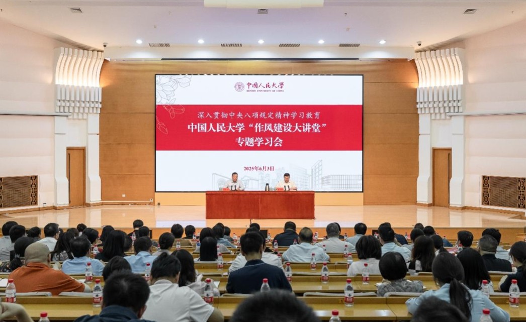 6月3日,中国人民大学“作风建设大讲堂”专题学习会举行,中央纪委国家监委第二监督检查室有关负责同志作辅导报告。中国人民大学党委书记张东刚主持并讲话,全体在校党委常委,中层干部和新提拔干部代表,科级干部和教职工党支部书记代表,教学科研管理服务风险防控重点岗位干部代表,民主党派、无党派人士和党外知识分子代表参加学习。