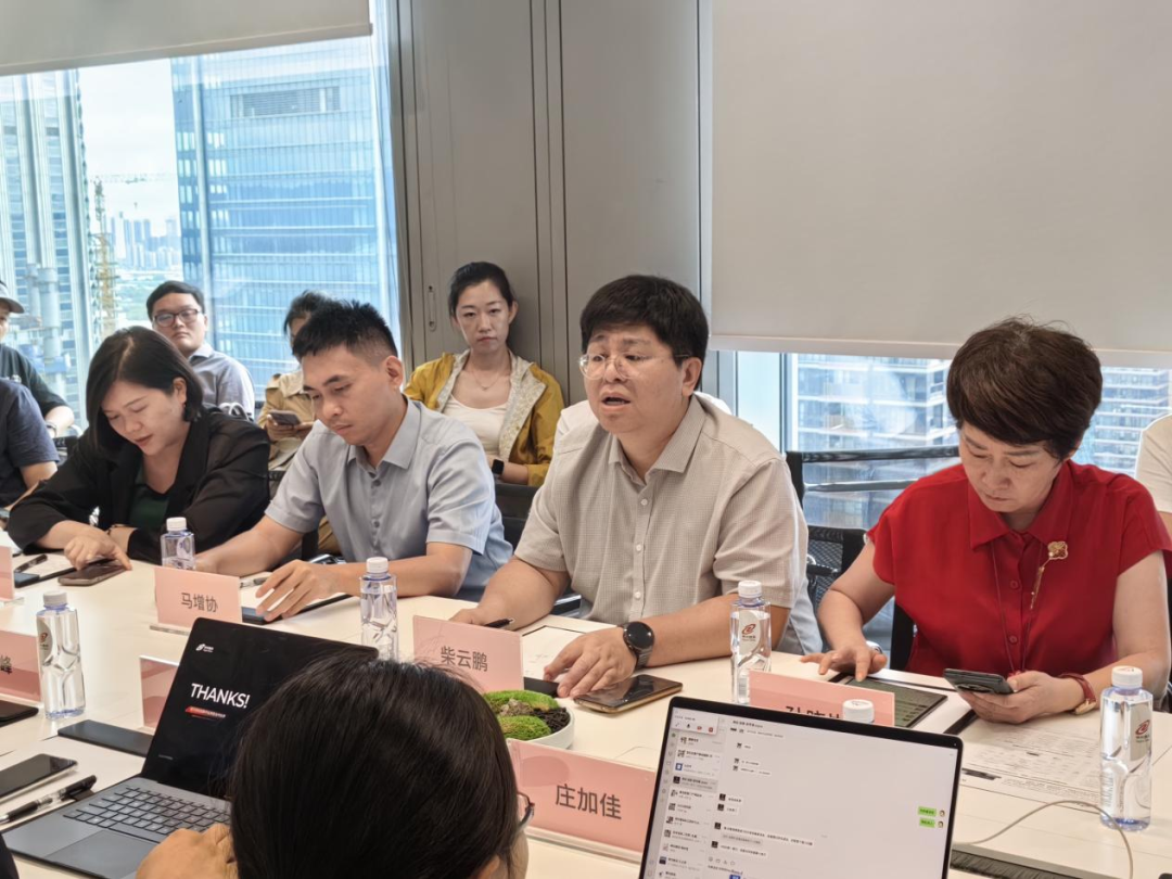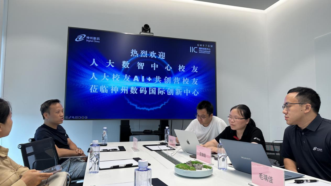 展厅参观结束后进入专题分享会,神州数码政企大客户事业部总经理毛瑀佳校友对神州数码集团进行了简要介绍。随后,中国人民大学信息学院副院长(主持工作)柴云鹏教授致辞,分享了信息学院在深圳构建产学研体系的最新进展,介绍了中国人民大学数据与人工智能研发实验中心(人大数智中心)工作的推进安排,以及与人大校友AI+共创营的深入互动。柴院长表示:AI技术行业应用离不开企业界的实践经验,参访活动为校友提供了“走出课堂、链接产业”的宝贵机会,未来可以继续交流,探讨合作。