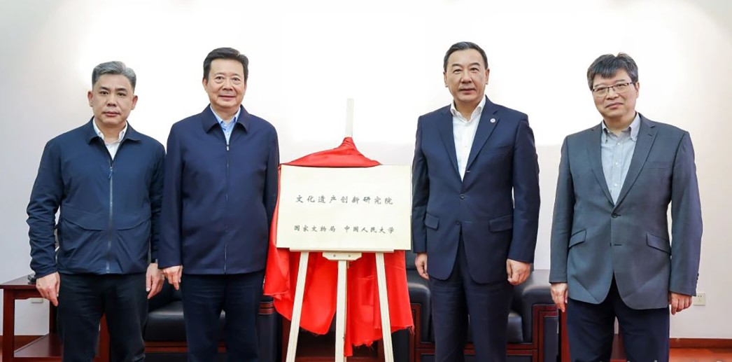 文化和旅游部副部长、国家文物局局长李群,中国人民大学党委书记张东刚、校长林尚立,国家文物局科技教育司司长罗静共同为国家文物局 中国人民大学文化遗产创新研究院揭牌。