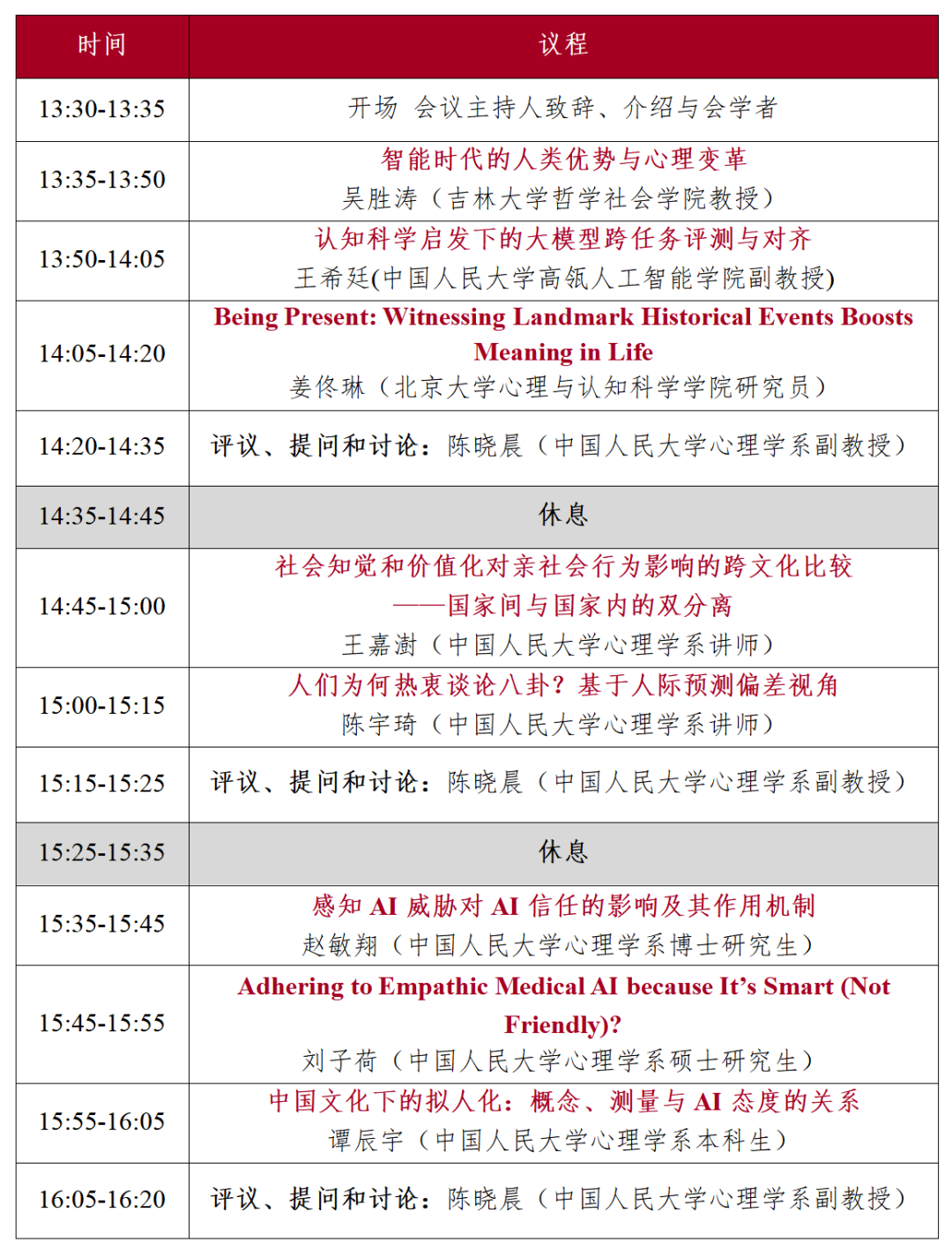 主持人:陈晓晨(中国人民大学心理学系副教授)