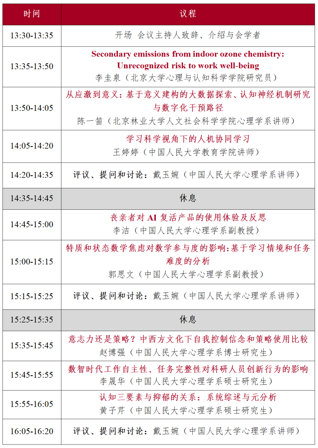 主持人:戴玉婉(中国人民大学心理学系讲师)