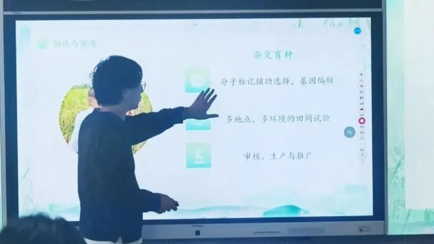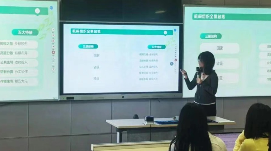 谭茗予同学系统汇报了我国农业科研机构组织体系的架构与功能,指出科研工作与国家战略、生产实践的紧密结合。