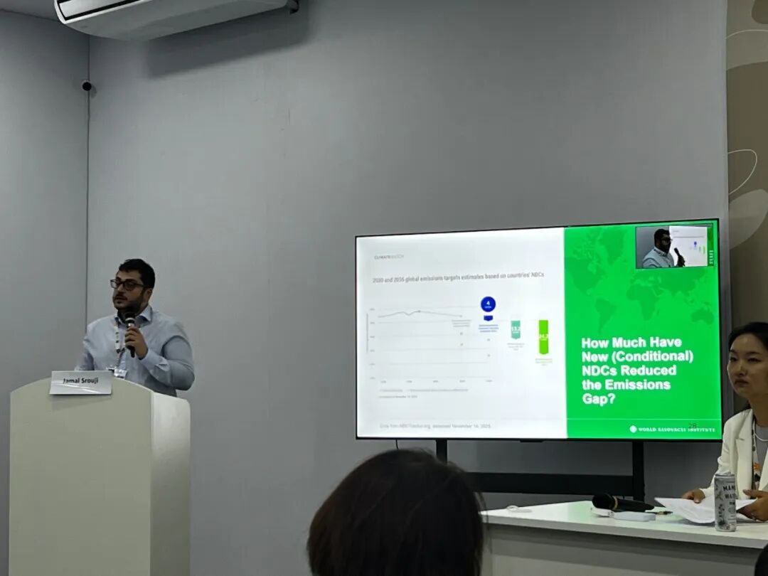 在主旨报告环节,清华大学环境学院教授王灿介绍了《2025年全球碳中和进展评估》的核心发现,这一研究已连续多年发布,中国人民大学生态环境学院作为核心参与单位之一,在指标体系、数据分析和场景评估等部分发挥了关键作用。随后,世界资源研究所(WRI)国际气候雄心高级研究员、黎巴嫩国家NDC谈判代表 Jamal Srouji 随后分享了最新的《State of Climate Action》报告。他梳理了全球脱碳的年度进展,指出当前各国距离实现《巴黎协定》下的2030年目标仍存在显著差距,并介绍了WRI在NDC实施监测方面的最新进展。