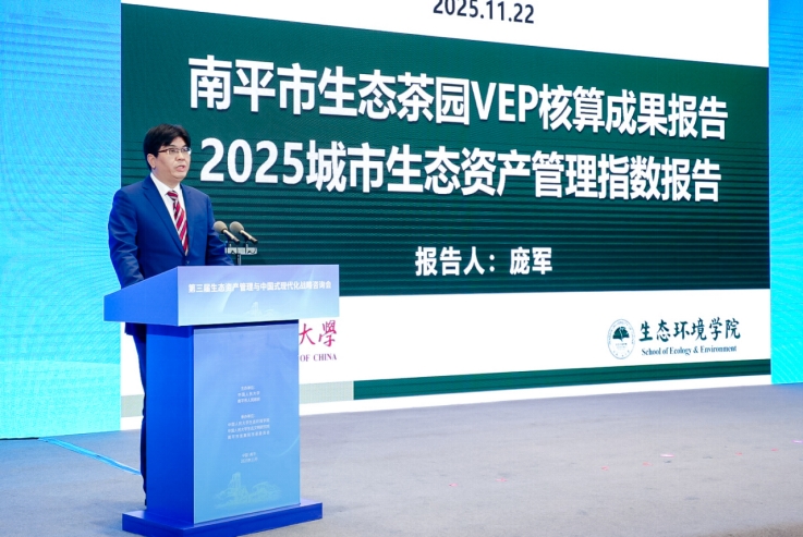 立足战略咨询会成果深化需求,结合南平的生态实践,中国人民大学生态环境学院院长庞军代表中国人民大学在开幕式上发布了两项研究成果。《南平市生态茶园VEP核算成果报告》聚焦南平市优势特色的茶产业,基于VEP方法,核算生态茶园的市场化溢价,探索金融助力生态产业化和产业生态化的有效路径。此外,在2023年、2024年两度发布的基础上,中国人民大学继续发布《2025城市生态资产管理指数报告》,持续跟踪评估中国城市生态资产管理状况,为各地精准定位生态资产管理短板、优化绿色发展政策提供了权威决策参考,促进中国城市生态资产管理水平提升。
