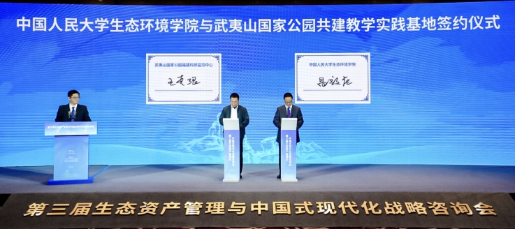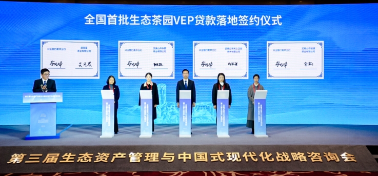 开幕式上还举行了签约及揭牌仪式,凝聚多方合力共推生态文明建设:全国首批生态茶园VEP贷款落地签约仪式顺利举行,兴业银行南平分行与四家茶企签约,开创生态价值转化落地新路径;中国人民大学生态环境学院与武夷山国家公园福建管理局签署共建教学实践基地协议,并共同为“中国人民大学・武夷山国家公园教学实践基地”揭牌,搭建起校地协同、研用一体的创新平台,助力生态文明研究与实践深度融合。