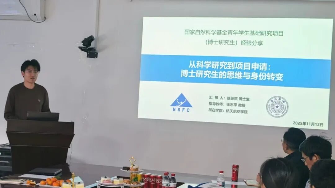本次会议还特别邀请清华大学2025年国自然基金青年学生基础研究项目(博士研究生)获得者赵英杰莅临交流。他详细介绍了校内初选、函评、会评等完整申报流程,并结合个人经历分享了准备阶段的核心要点与实操心得。