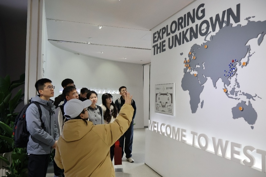 在西湖大学云谷校区,师生一行首先参观了校史展厅、本科生书院及理学院科研教学空间,实地感受西湖大学“高起点、小而精、研究型”的办学特色,对其现代化的科研平台与交叉学科布局有了更为直观和系统的了解。