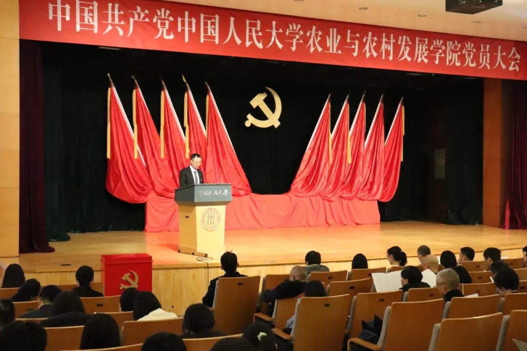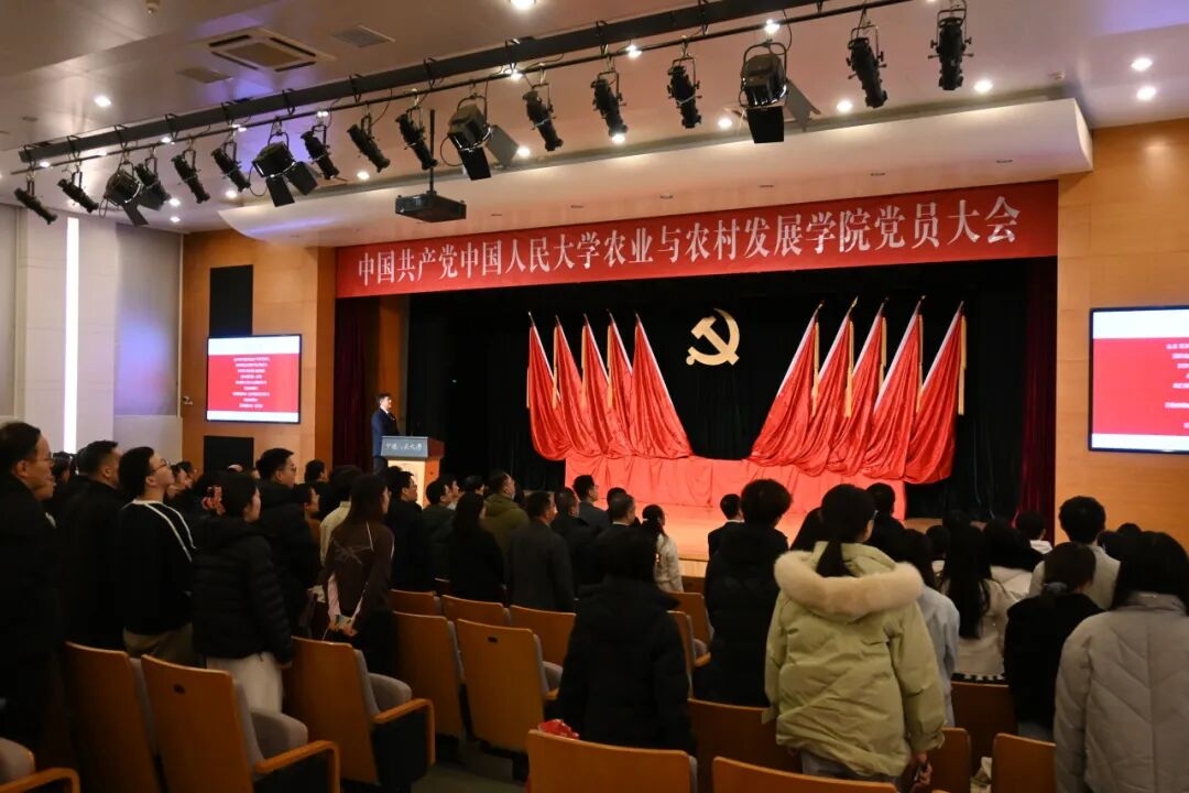2025年12月3日,中国共产党中国人民大学农业与农村发展学院党员大会在八百人大教室召开。学校党委组织部、纪检监察机构工作部门有关同志和片区组织员出席会议。学院217名正式党员参加会议。曾在学院领导班子工作过的同志、在学院工作但组织关系不在学院的党员同志、在学院工作的民主党派教职工代表以及非党员教职工代表,预备党员列席会议。会议由吕捷同志主持。