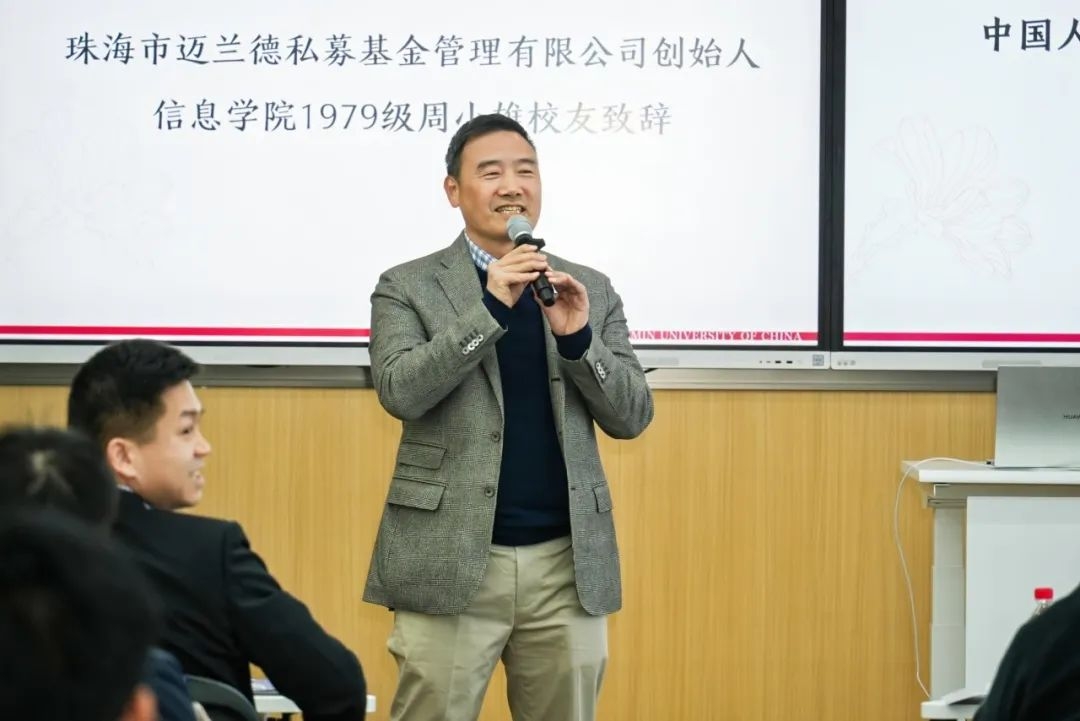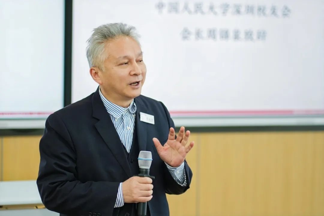 周小雄在致辞中回顾了自己当年考入人大经济信息管理系的经历,表达了与大湾区校友相聚的喜悦,并对学院积极推动中国人民大学数据与人工智能研究中心在深圳落地表示热切期盼。他指出,深圳作为一个充满创新活力的年轻城市,为金融、信息等新兴行业的发展提供了无限机遇。希望学院以研究中心为契机,结合深圳的科技创新氛围和校友企业的支持,推动AI等前沿技术的研究与应用。他同时呼吁校友们加强交流与合作,为大湾区的信息产业发展贡献力量。