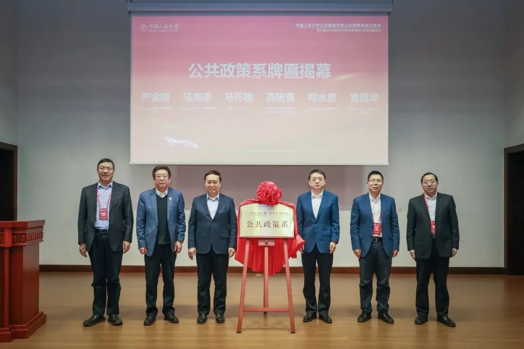 马怀德、高培勇、马海涛、郑水泉,严金明、吉昌华共同为公共政策系揭牌。