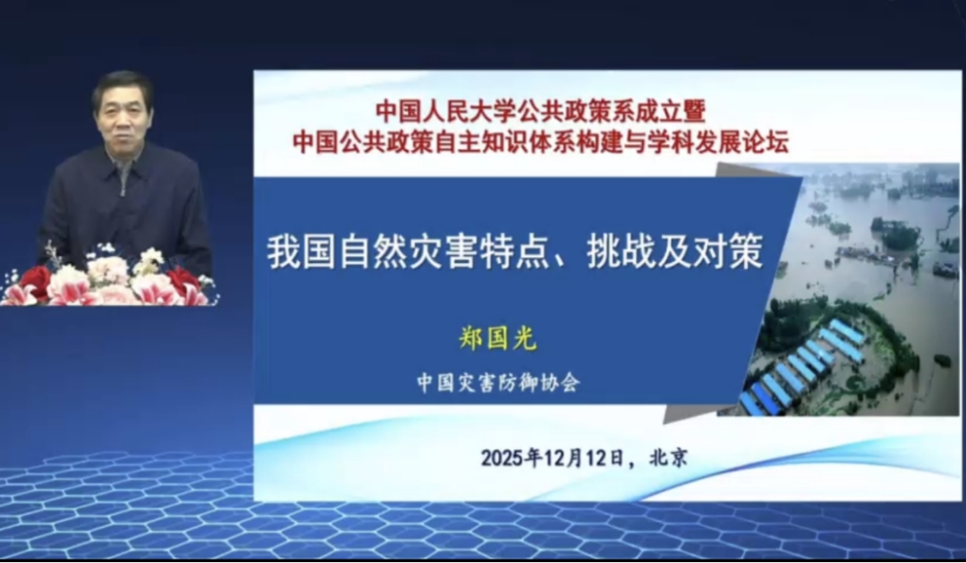 主旨报告环节,中国灾害防御协会会长、应急管理部原副部长郑国光作视频演讲,阐述了我国自然灾害的严重现状、形势变化与防治挑战,深入分析“十五五”规划建议相关部署对公共政策领域的灾害防治与应急管理工作提出的实践指引;厦门大学公共政策研究院院长、原国务院学位委员会公共管理学科评议组联合召集人陈振明深入剖析政策科学的范式转变,解读人机共生决策新场景与融合新范式,为公共政策研究数智化转型和自主知识体系建构提供学术指引;清华大学公共管理学院院长朱旭峰追溯了党重视调查研究的传统,强调调查研究在提炼中国经验中的基础性作用;中国人民大学公共管理学院教授毛寿龙提出政府、市场、社会三元兼容的IAPP秩序理论,倡导学科视角从解决短期问题转向培育长期秩序,呼吁建立能够支撑国家长远战略的政策分析框架。严金明主持。