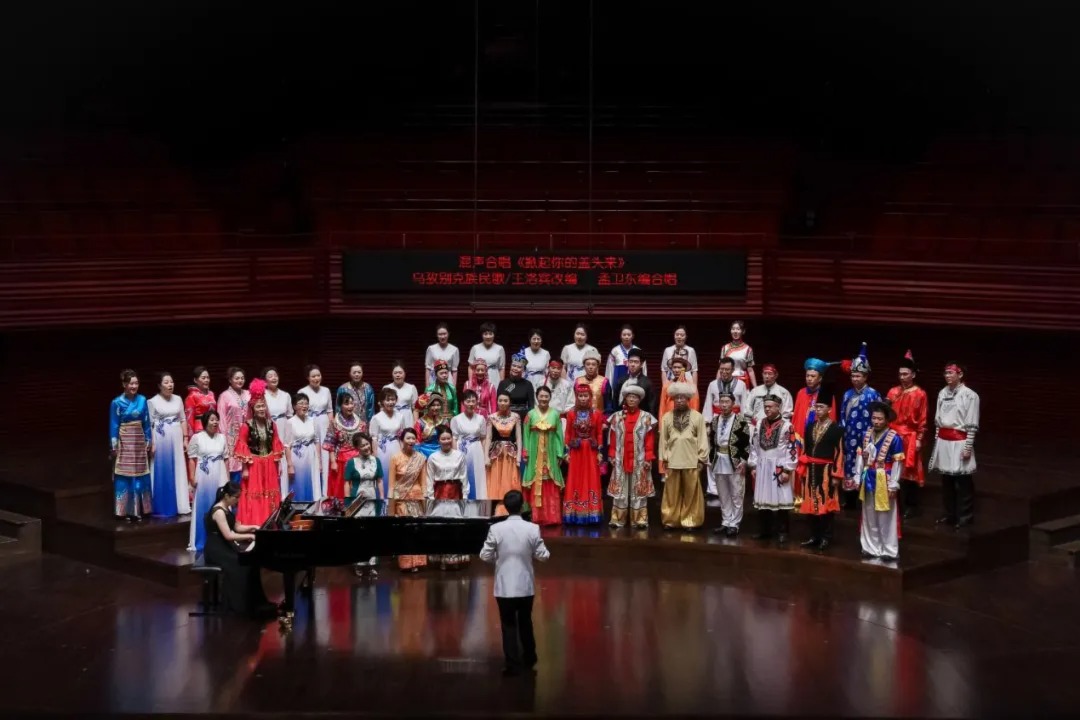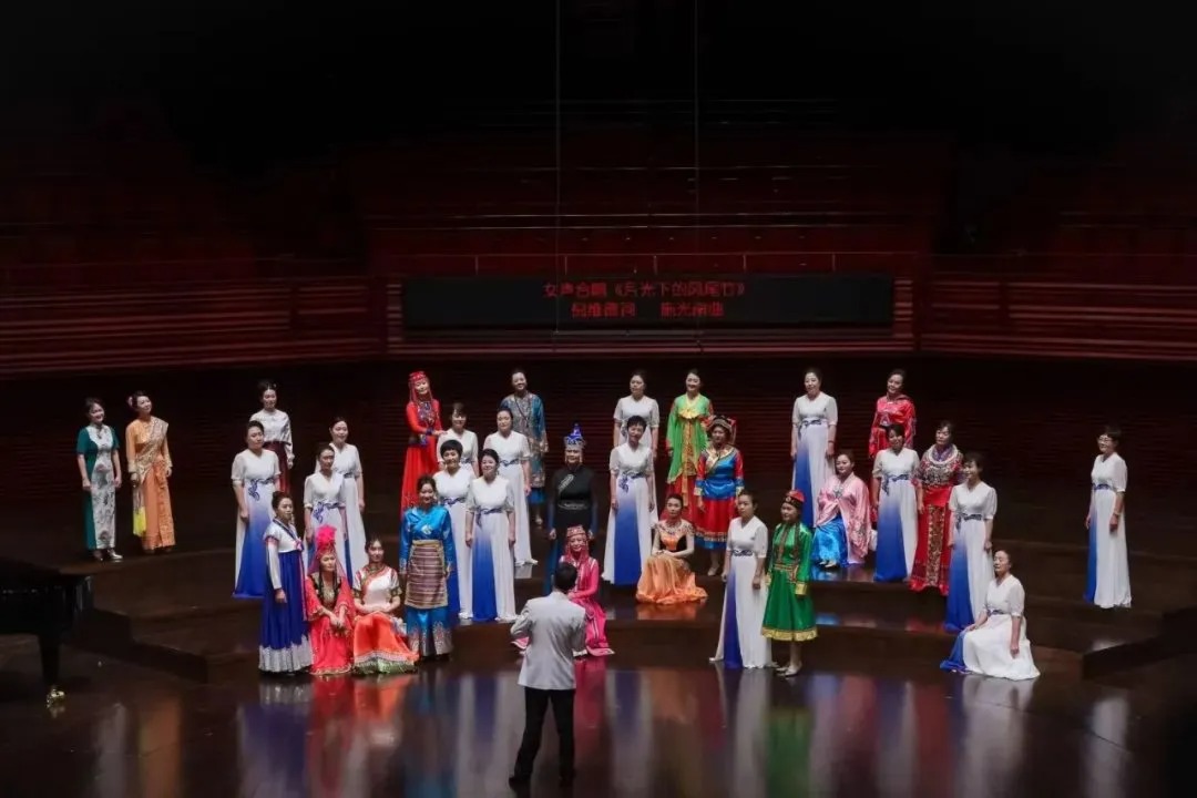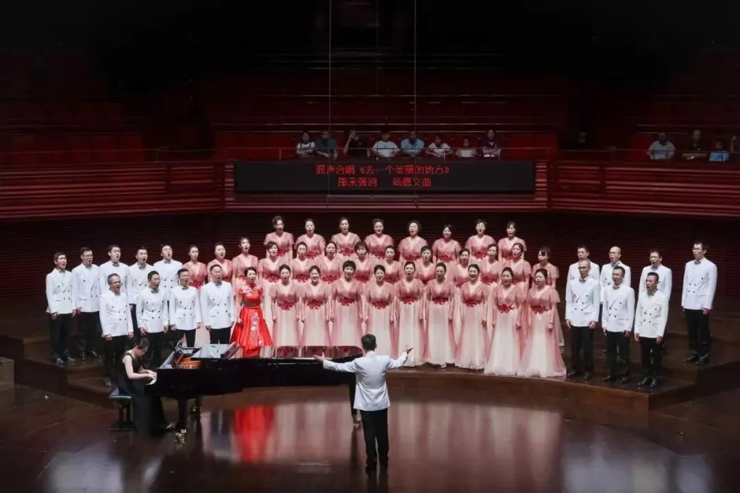 音乐会在《我的祖国》中拉开序幕。由乔羽先生作词、刘炽先生作曲的这首经典作品,旋律优美,歌词生动,激情澎湃。深圳市一勺池合唱团用时而深情款款,时而气势磅礴的演唱,带领观众领略了一幅江河帆影漂移、田野稻浪飘香的祖国美景。