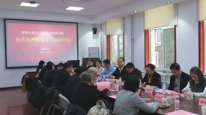 2025年12月19日上午,中国人民大学公共治理研究院主办的“公共治理和安全发展研讨会”在中国人民大学中关村校区求是楼召开。会议汇聚了来自政府部门、科研机构、高校、媒体及相关领域的多位嘉宾,共同围绕公共治理与安全发展的前沿议题展开研讨。