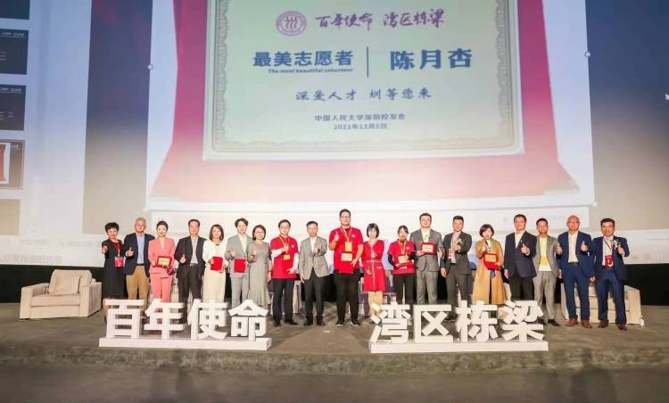 为人大深圳校友会最美志愿者颁发证书。