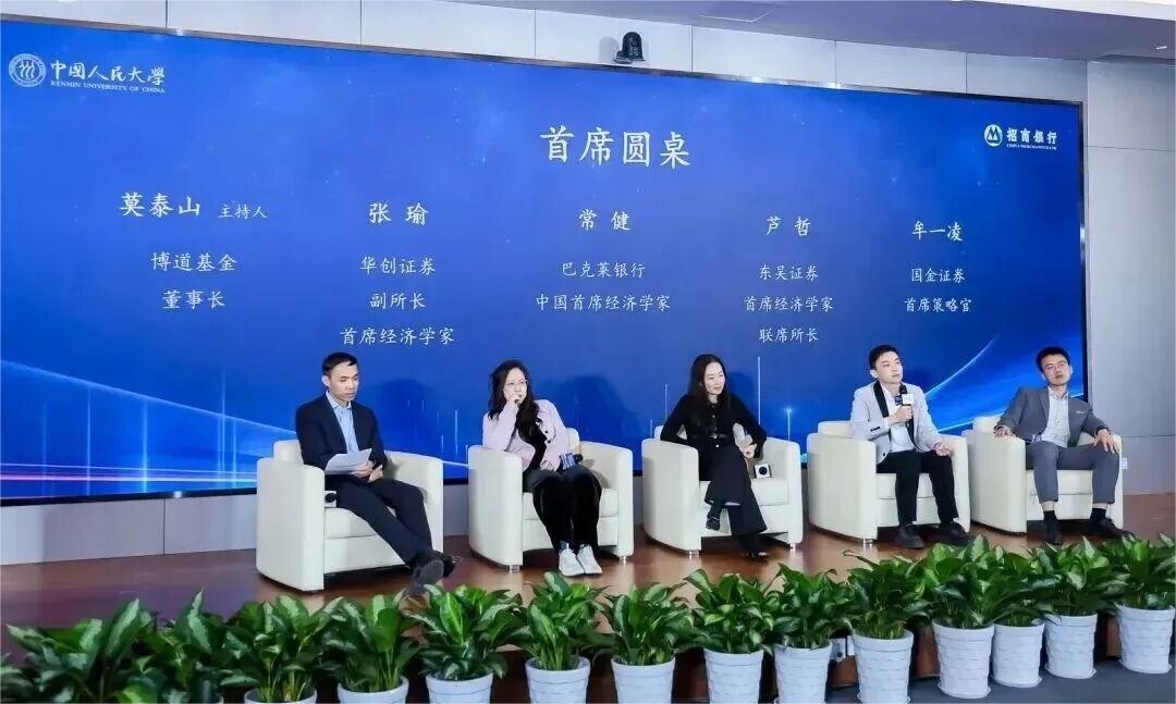 首席圆桌由博道基金董事长莫泰山主持,华创证券副所长、首席经济学家张瑜,巴克莱银行中国首席经济学家常健,东吴证券首席经济学家芦哲,国金证券首席策略官、联席所长牟一凌相继就宏观经济、外汇、消费行业、中游制造业等进行深入研讨。
